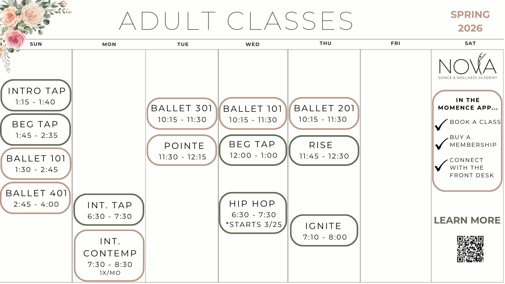 Spring Schedule begins January 4th, 2026!